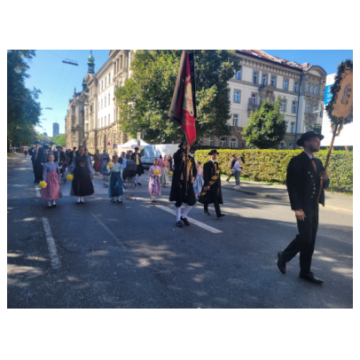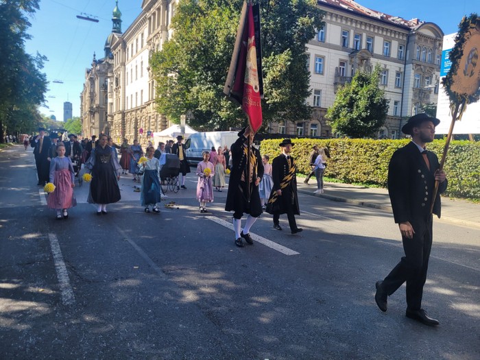 52 Lechler tapfer und zunehmend durstig den langen dicht mit Zuschauern gesäumten Weg zur Wiesn ins Fischer Vroni Zelt.