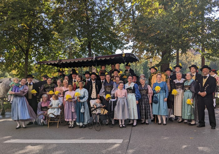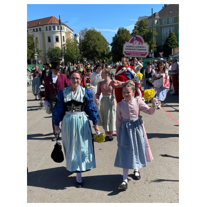 52 Lechler tapfer und zunehmend durstig den langen dicht mit Zuschauern gesäumten Weg zur Wiesn ins Fischer Vroni Zelt.